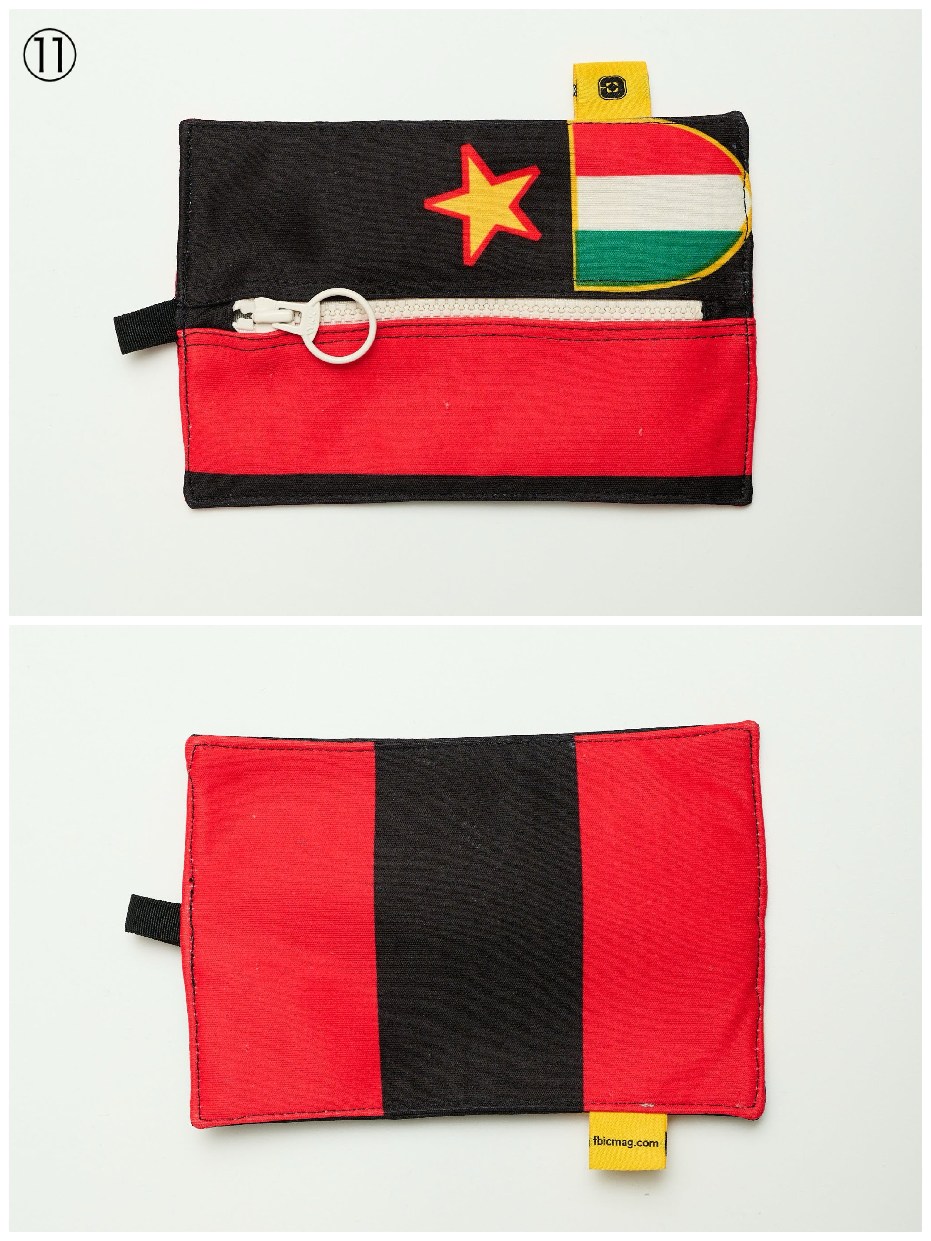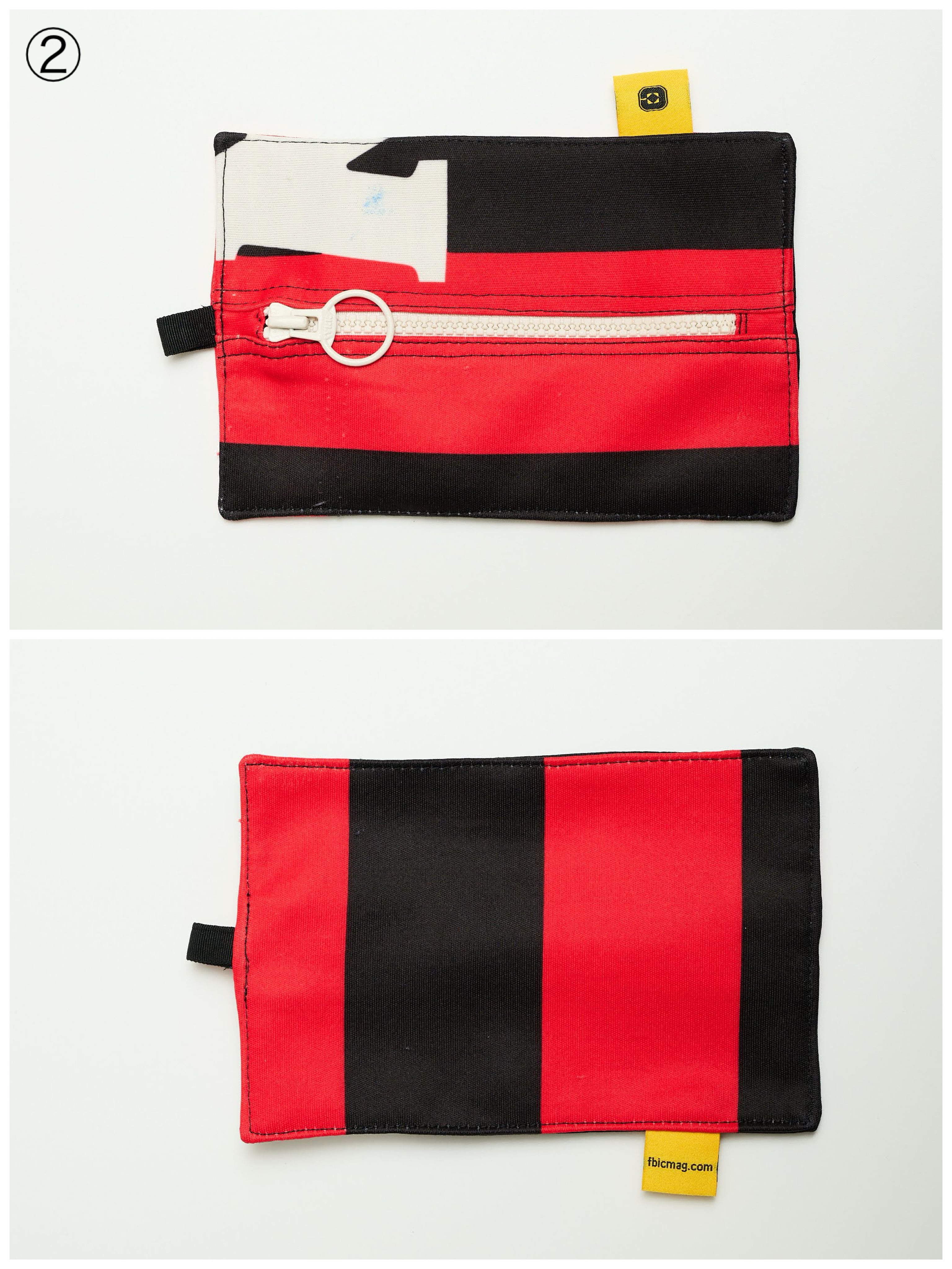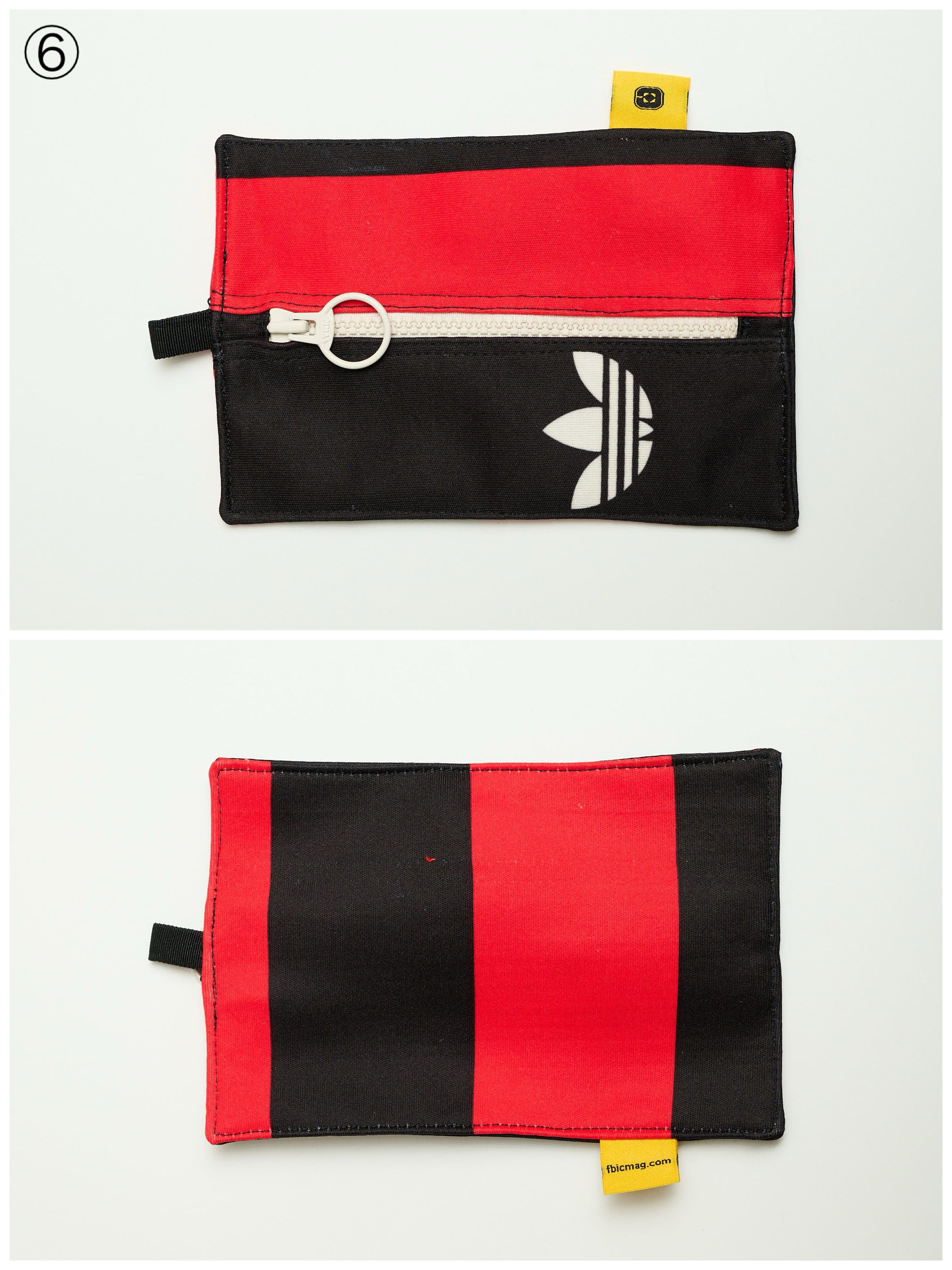 Vintage football jerseys are carefully reworked into a compact utility pouch.