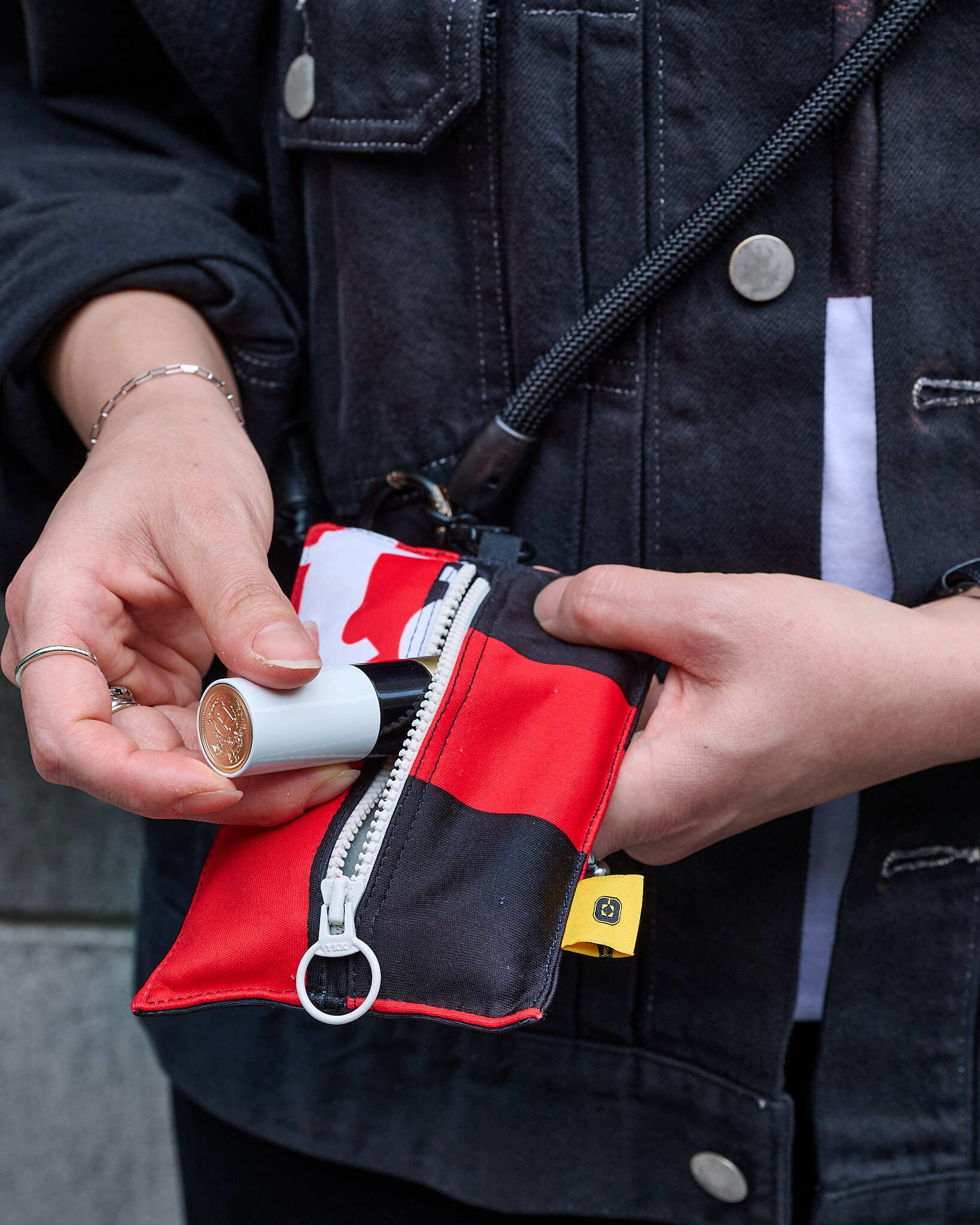 ポケットティッシュケースの形をベースに、日常で使えるユーティリティポーチとして再編集。